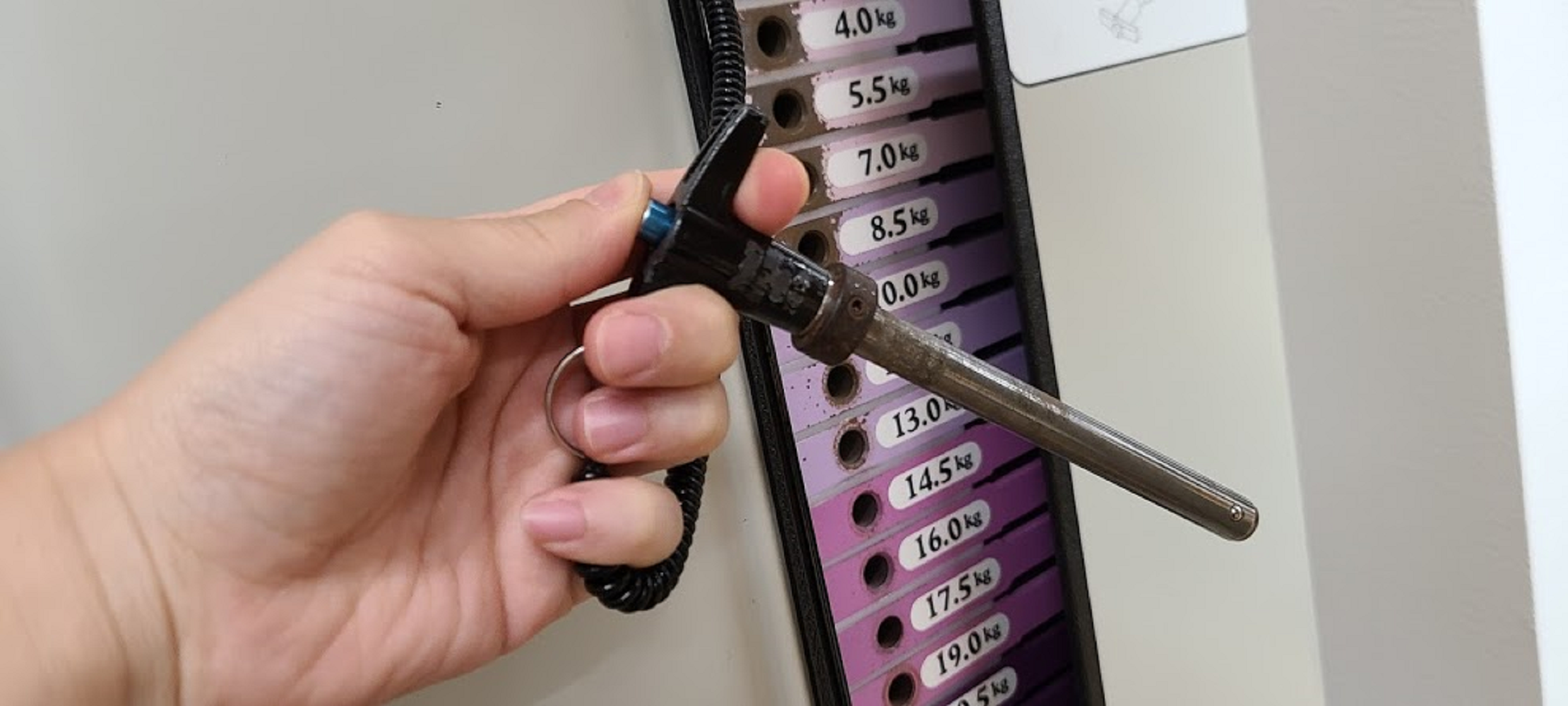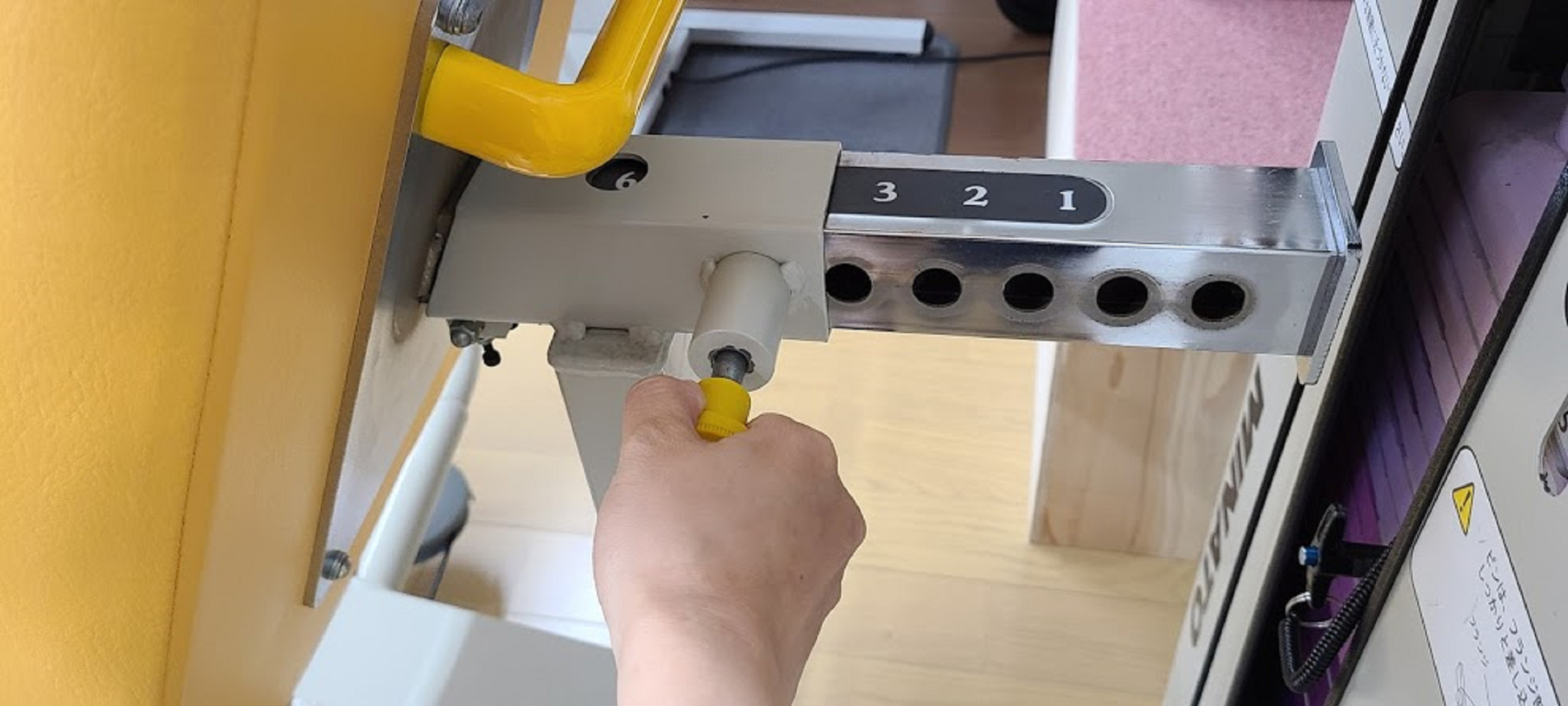 - 利用者様ごとに重さが違うため、バインダーにある重りを確認。