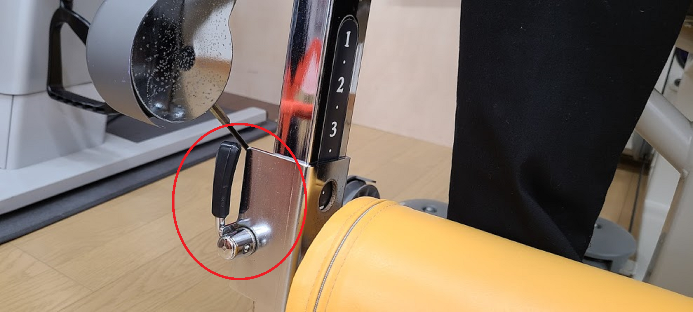 - パッドの位置が合わない場合は、横にあるレバーを引き高さをっしっかりと合わせる。