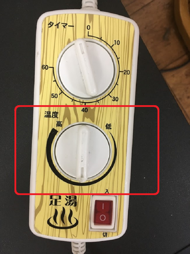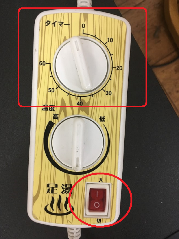 - 朝、出勤した際(午後からの準備をする際)に赤色のスイッチを入れ、タイマーを60の場所まで合わせます。