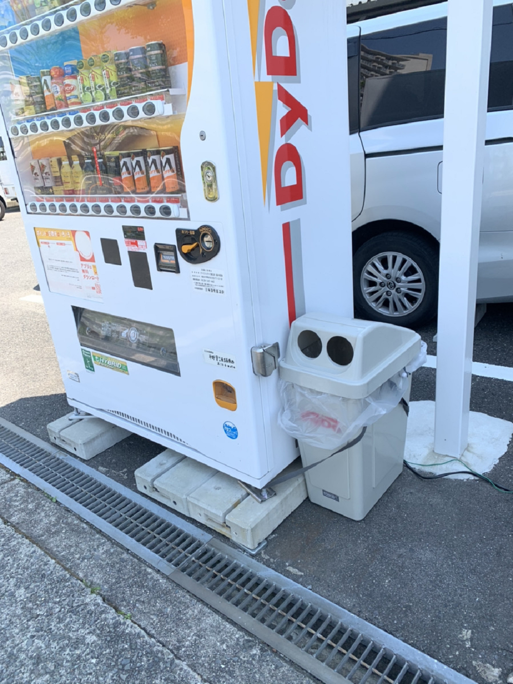 クリ長原前には自販機があります。風当たりがきつい日も多く空き缶用のごみ箱の蓋が飛んでしまうことがあります。