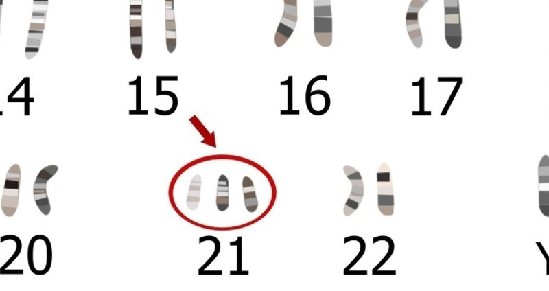 通常、1番目から22番目の染色体まではペアになっていますが、ダウン症は21番目の染色体が1本多く3本あるために起こる生まれつきの疾患です。